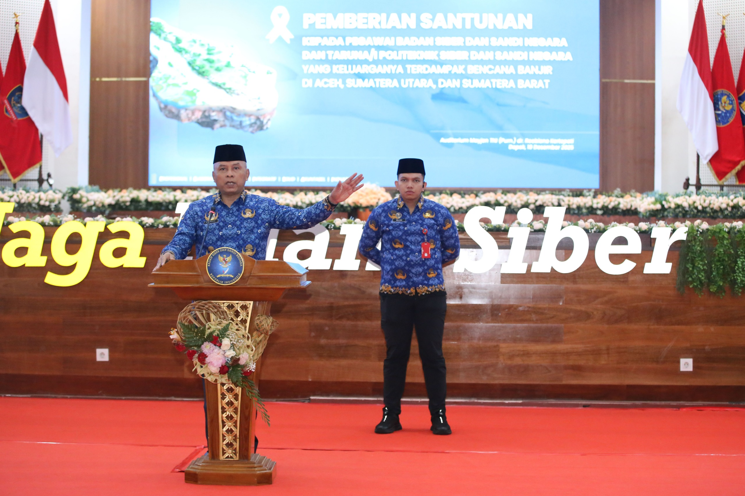 Dalam sambutannya, Kepala BSSN Nugroho menyampaikan bahwa kegiatan ini adalah bentuk solidaritas dalam mendukung pegawai dan keluarga yang terdampak bencana di wilayah Aceh, Sumatera Utara, dan Sumatera Barat.