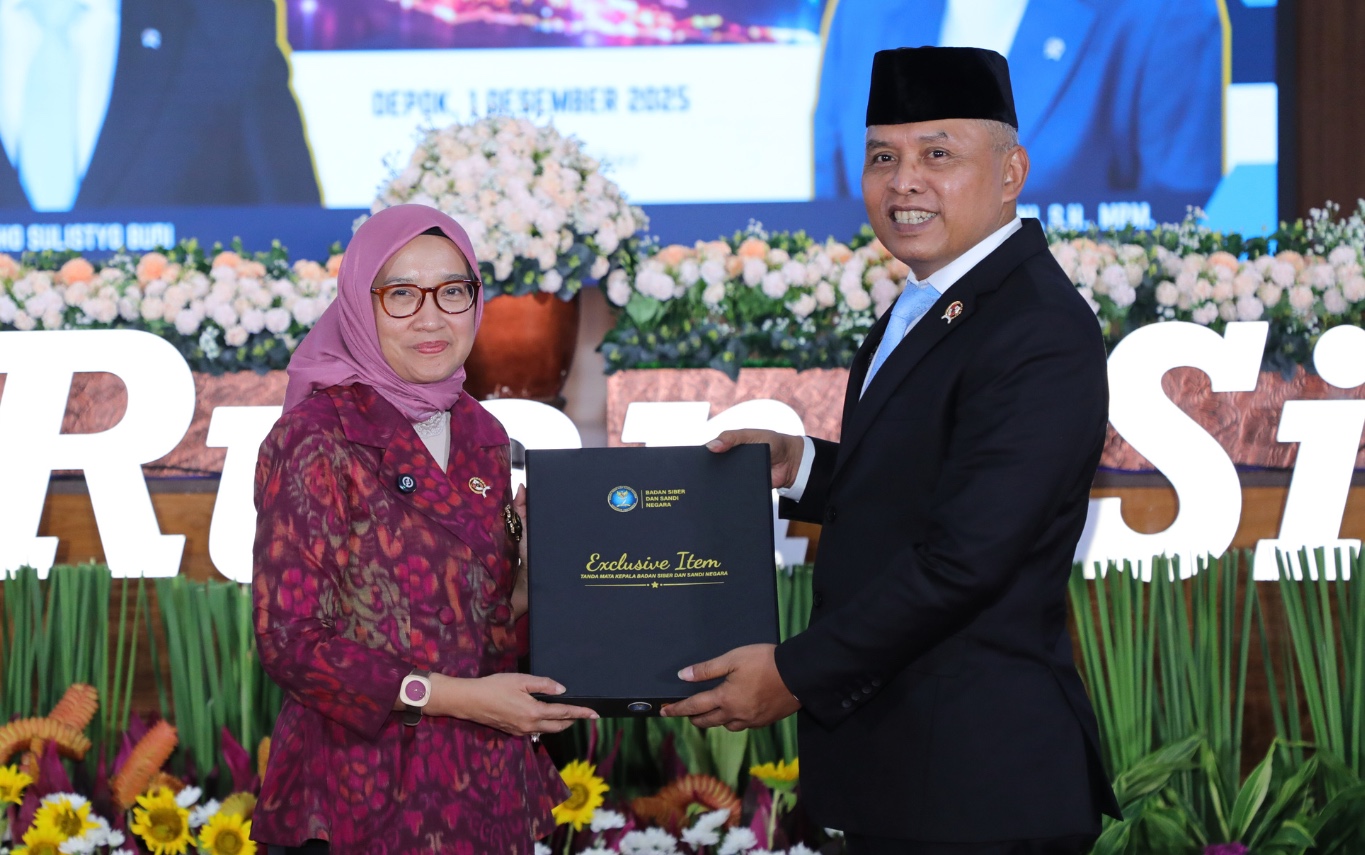 Depok, BSSN.go.id – Badan Siber dan Sandi Negara (BSSN) memberikan penghargaan Adibhakti Sanapati kepada Menteri Pendayagunaan Aparatur Negara dan Reformasi Birokrasi (PANRB) Rini Widyantini, S.H., M.P.M di Kantor BSSN, Depok, Senin (1/12/2025).