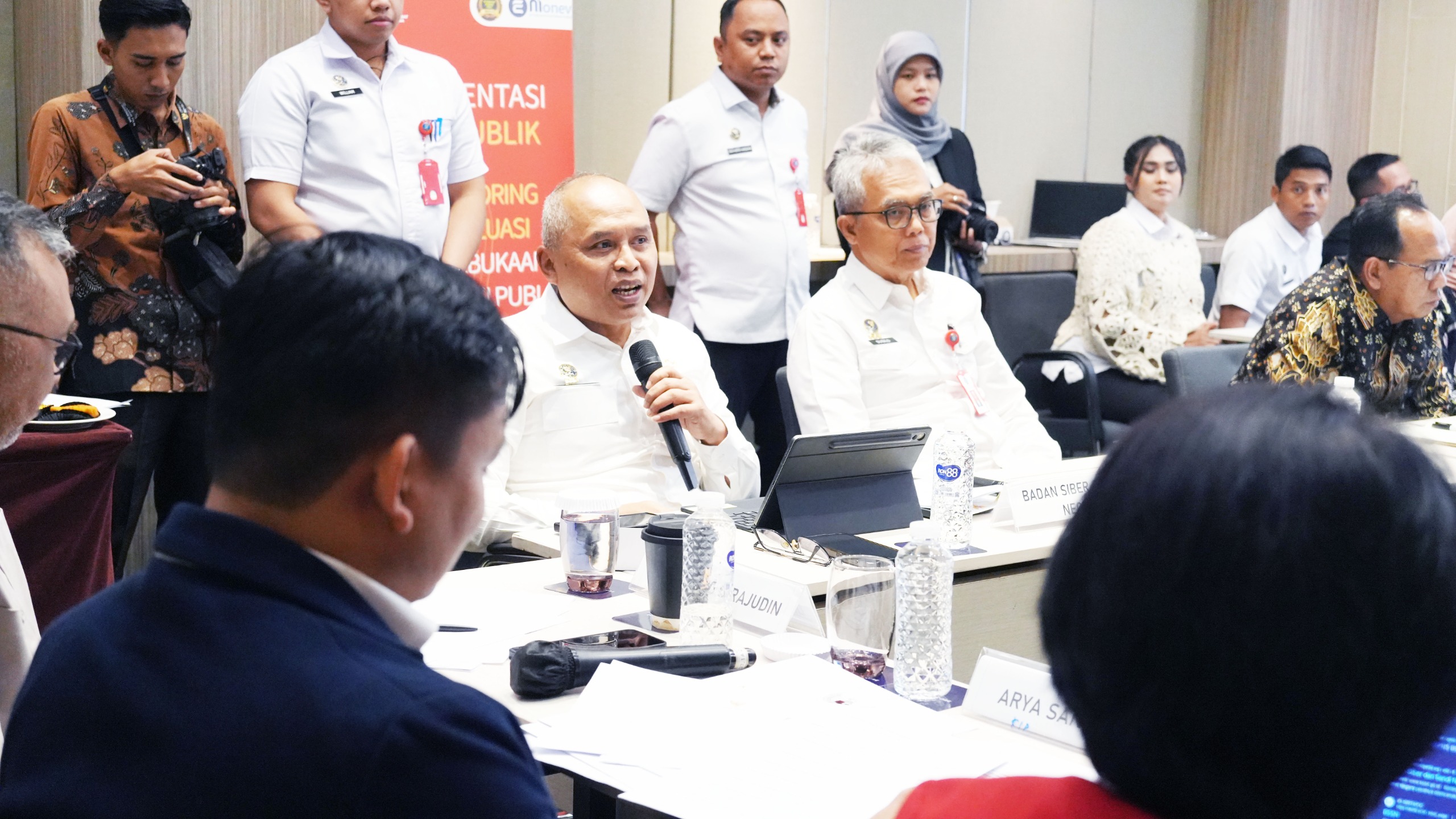 Kegiatan ini turut dihadiri oleh Sekretaris Utama BSSN, Y.B. Susilo Wibowo, S.E., M.M., Kepala Biro Hukum dan Informasi Publik, Berty Beatus Willem Sumakud, S.H., M.H., serta Juru Bicara BSSN Dr. Arif Rahman Hakim, S.ST., M.Eng. Bersama BSSN, Uji Publik Monev 2025 juga diikuti oleh tiga Badan Publik lain di satu ruang yang sama, yaitu Kementerian Pertanian, Lembaga Sensor Film, dan Universitas Jenderal Soedirman, dengan tim penguji dari KIP yaitu Arya Sandhiyudha, Yenti Nurhidayat, dan Danardono Sirajudin.