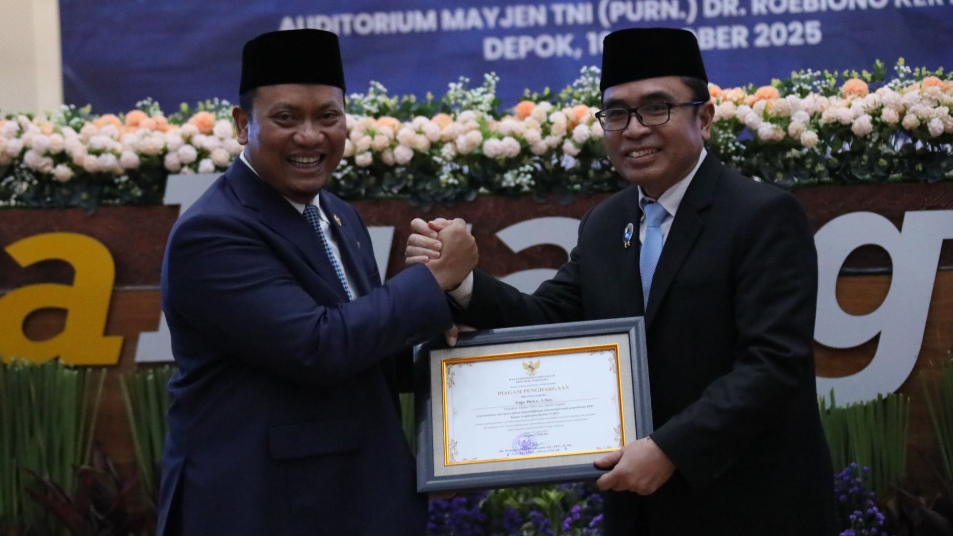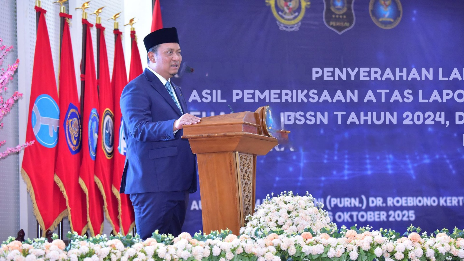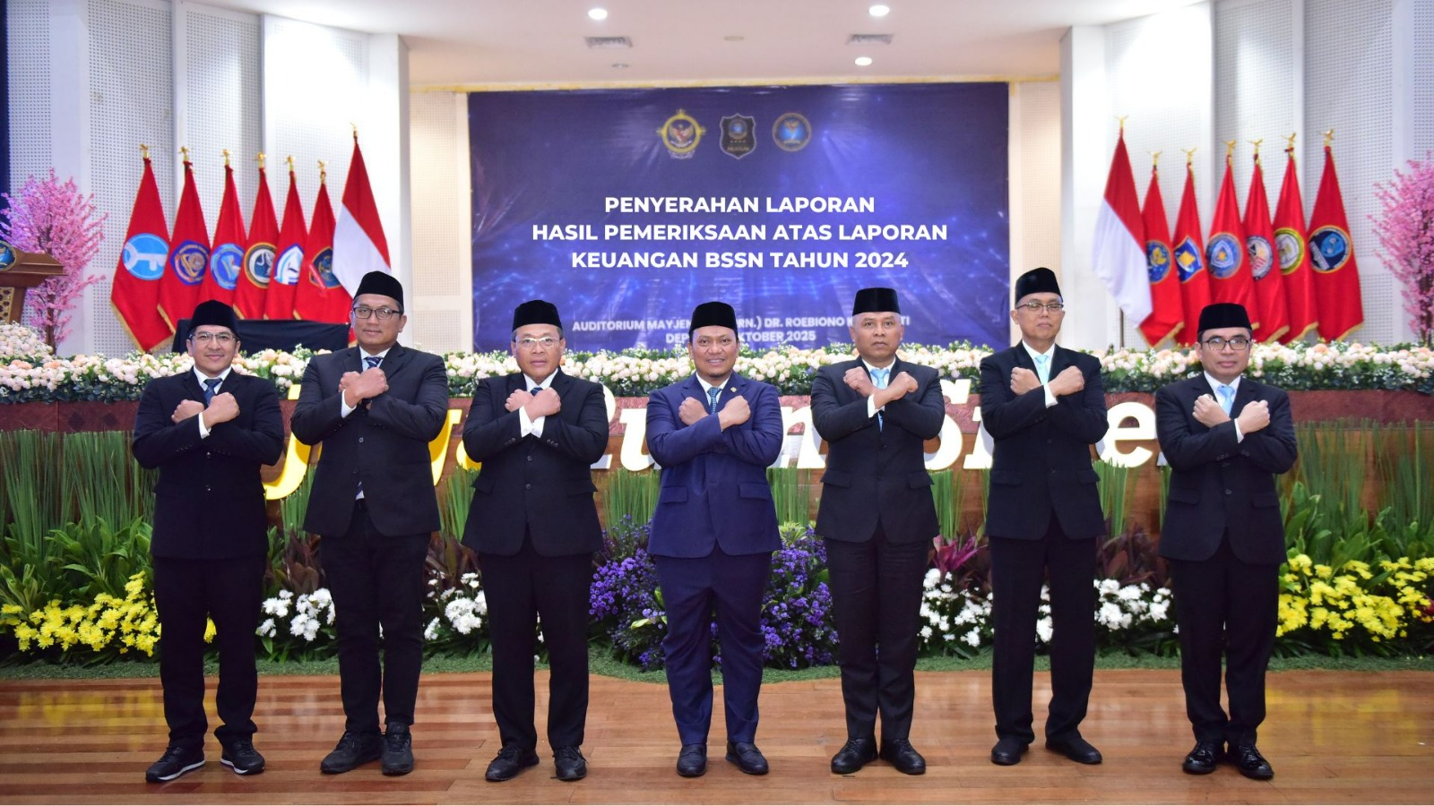 Badan Siber dan Sandi Negara (BSSN) menyelenggarakan acara Penyerahan Laporan Hasil Pemeriksaan atas Laporan Keuangan BSSN Tahun 2024 yang bertempat di Kantor BSSN, Sawangan, Depok pada Kamis, 16 Oktober 2025.