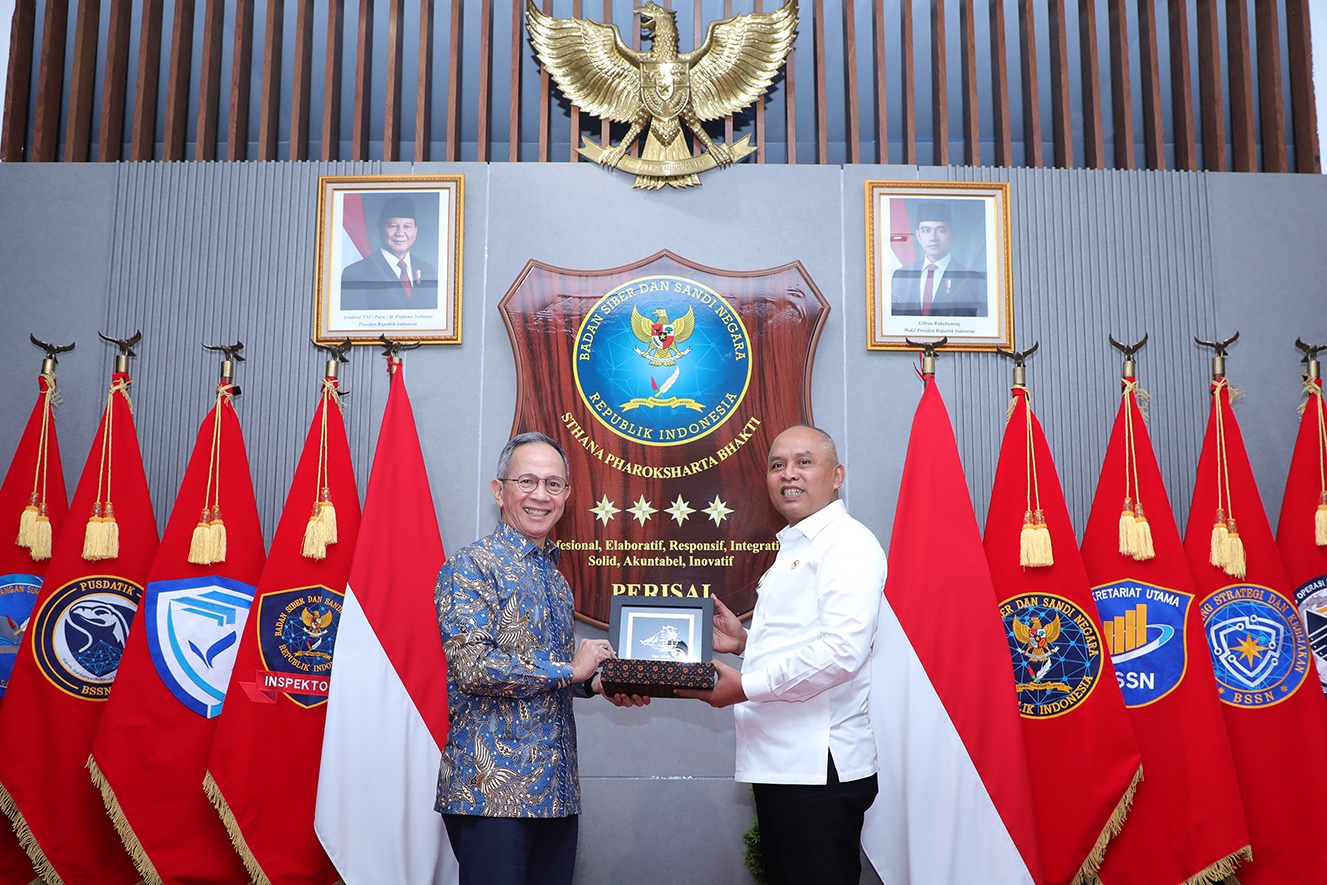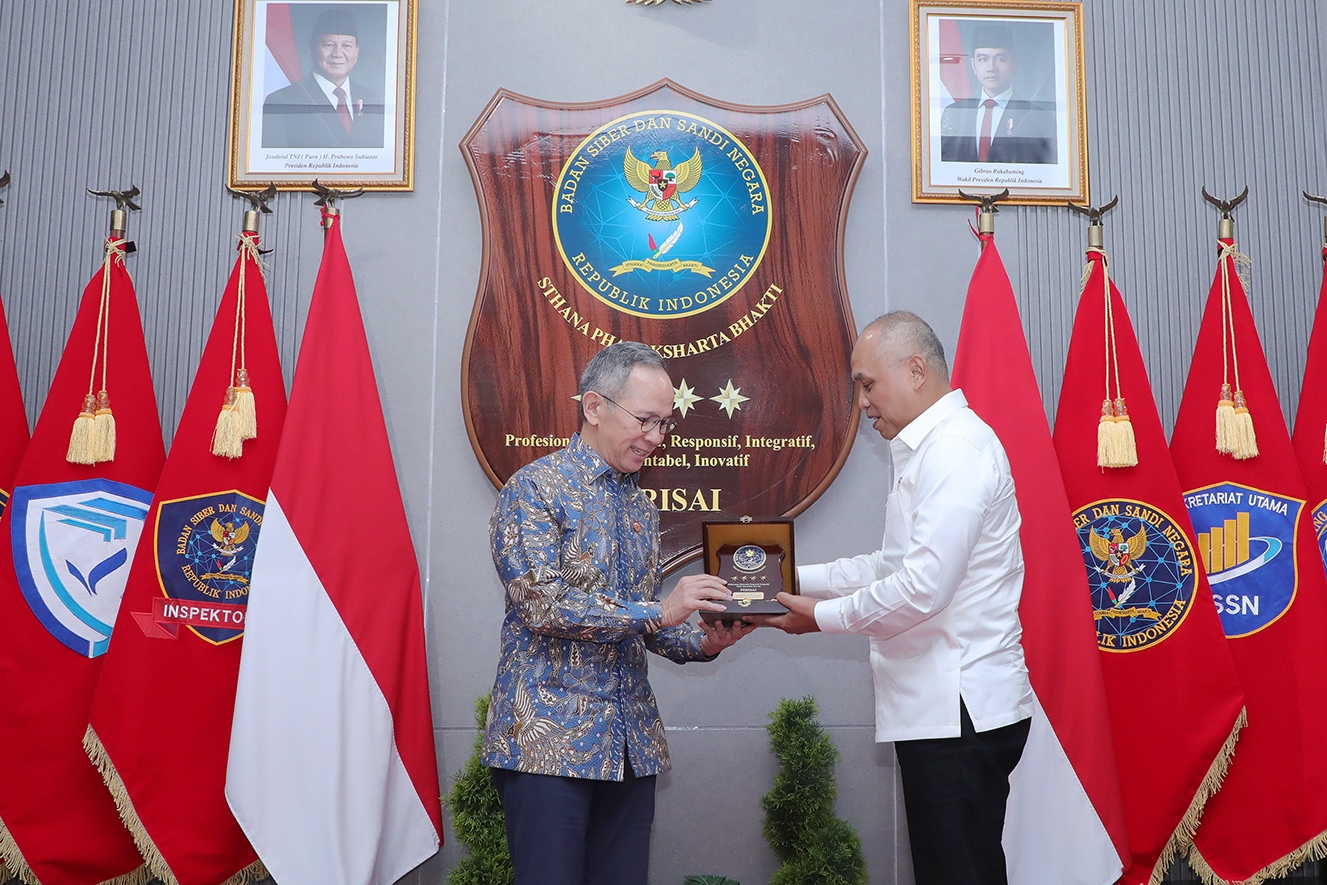 Jakarta, BSSN.go.id – Kepala Badan Siber dan Sandi Negara (BSSN), Letjen TNI (Purn.) Drs. Nugroho Sulistyo Budi, M.M., M.Han. menerima kunjungan Ketua Dewan Komisioner Otoritas Jasa Keuangan (OJK), Mahendra Siregar di Kantor BSSN, Jakarta, Selasa (16/12/2025).