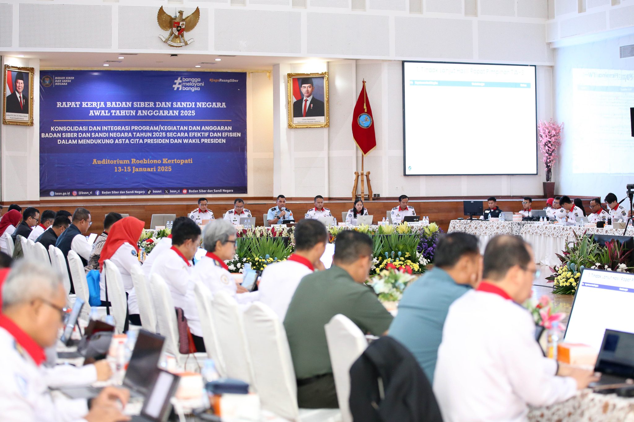 BSSN gelar Rapat Kerja Awal 2025 bahas konsolidasi program, kegiatan, dan anggaran selaras Asta Cita Presiden, refleksi tantangan 2024, serta dukung 100 Hari Kerja BSSN untuk keamanan siber nasional.