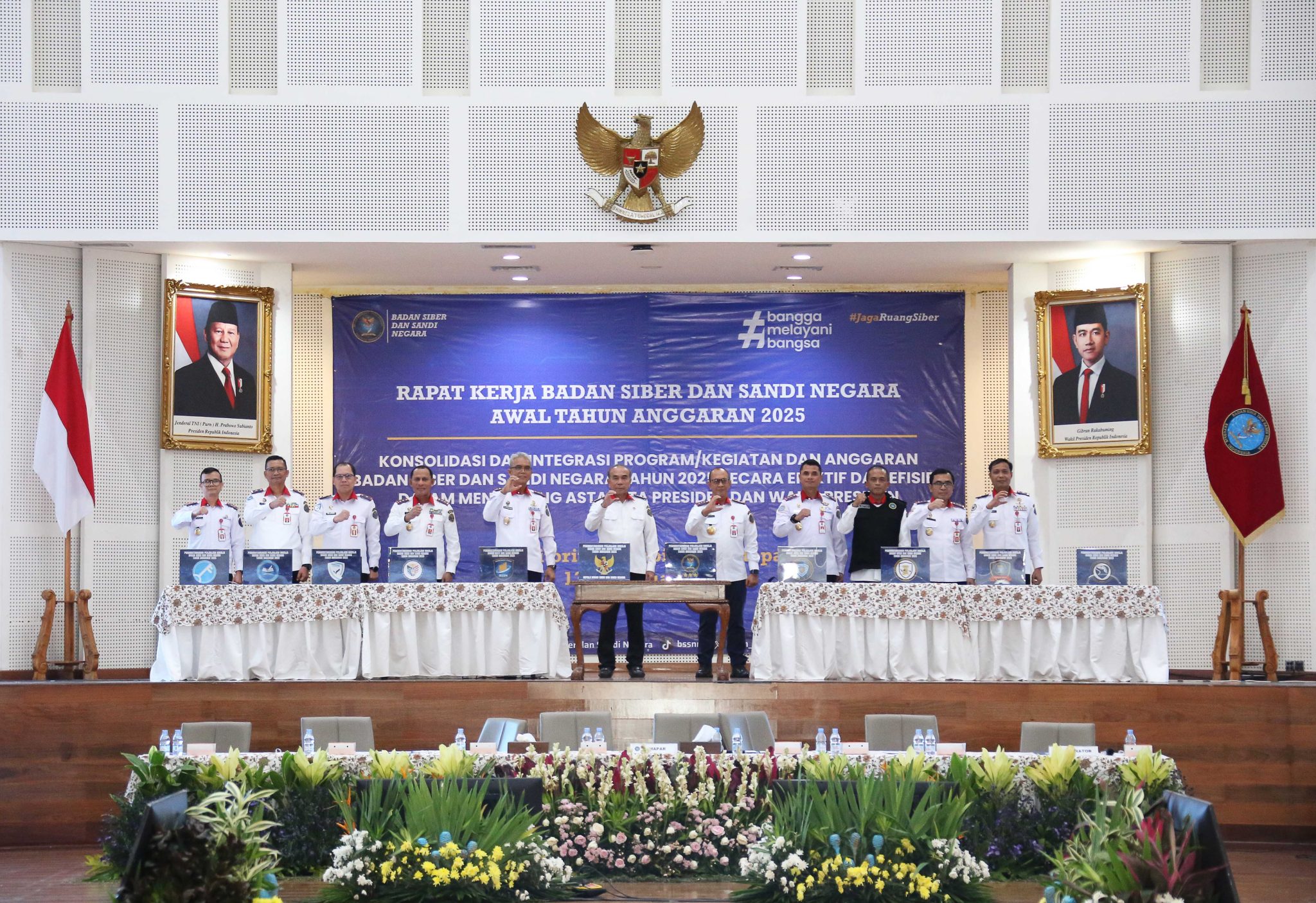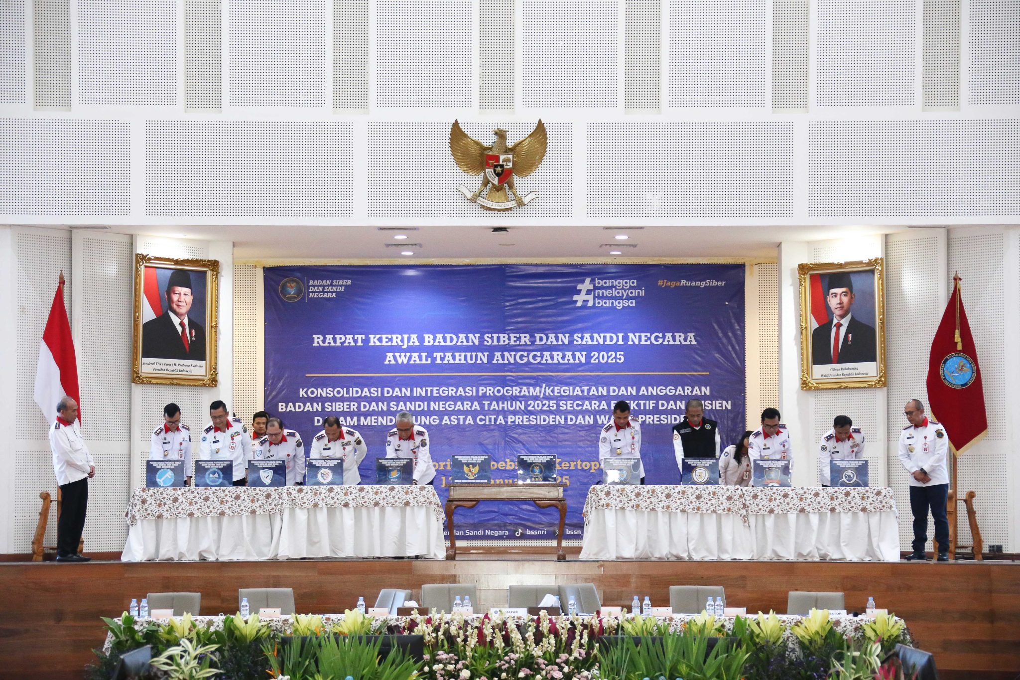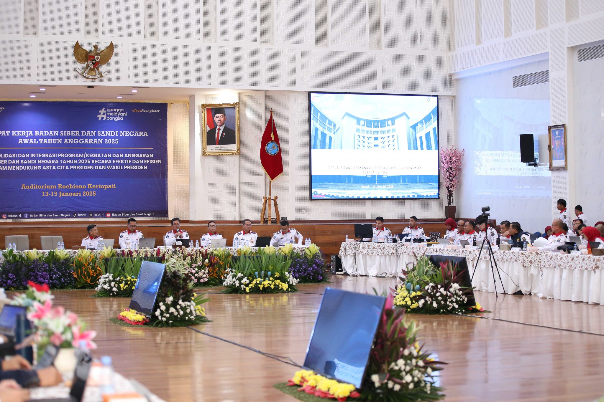 “Rapat Kerja Badan Siber dan Sandi Negara Awal Tahun Anggaran 2025 secara resmi saya nyatakan dibuka,” ucapnya.