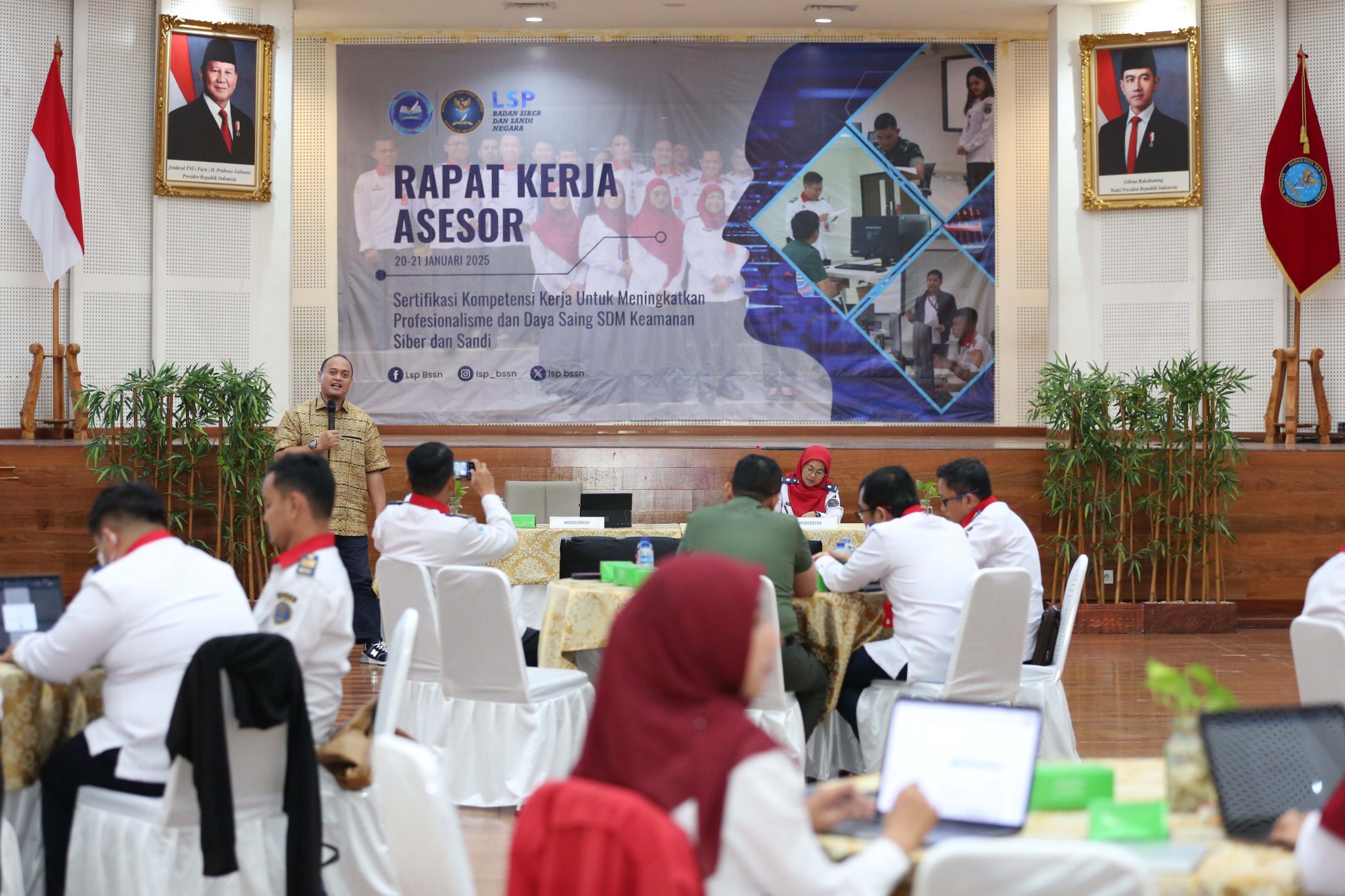 LSP BSSN gelar Rapat Kerja Asesor 2025 untuk tingkatkan profesionalisme dan daya saing SDM keamanan siber dan sandi melalui sertifikasi kompetensi, penegakan kode etik, dan penguatan peran asesor.