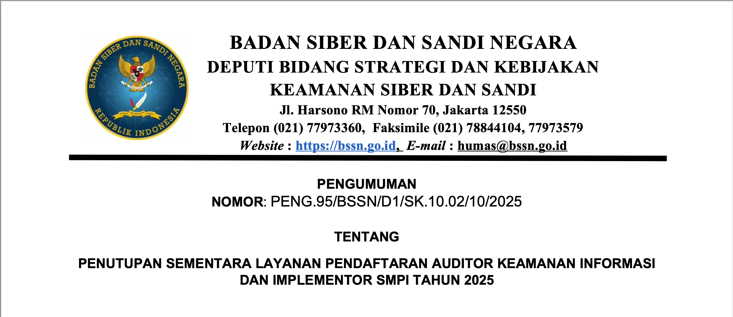 layanan@bssn.go.id - Alamat Helpdesk