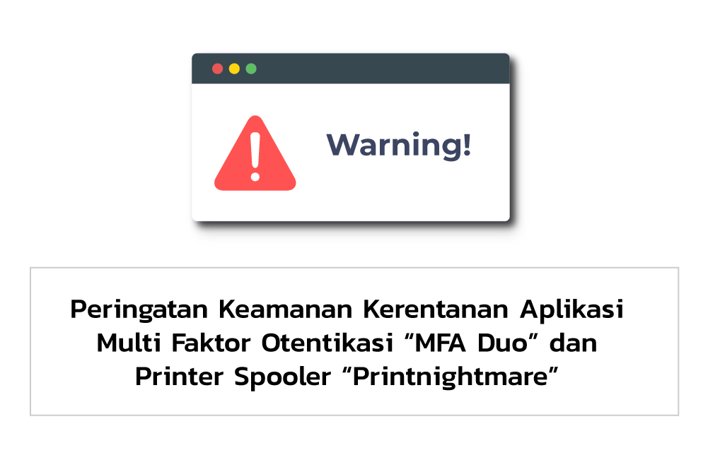 Informasi lengkap mengenai Peringatan Keamanan Kerentanan Aplikasi Multi Faktor Otentikasi “MFA Duo” dan Printer Spooler “Printnightmare” dapat diunduh di sini.