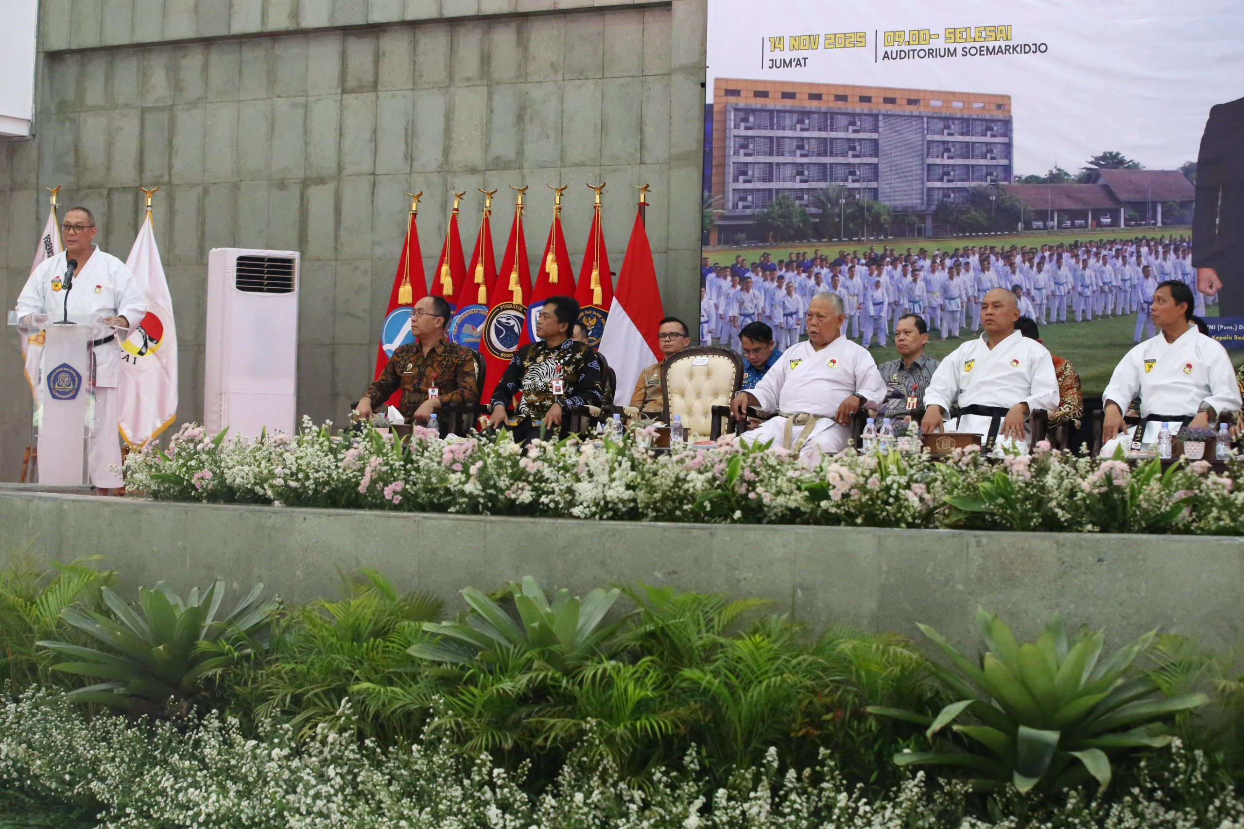 Bogor, BSSN..go.id —Politeknik Siber dan Sandi Negara (Poltek SSN) melaksanakan kegiatan Pengukuhan Pengurus Afiliasi Provinsi Jawa Barat Institut Karate-Do Indonesia (INKAI) Perisai Sanapati. Kegiatan yang dibersamai dengan Ujian Kenaikan Tingkat ini digelar pada hari Jumat tanggal 14 November 2025 di Kampus Poltek SSN Bogor.