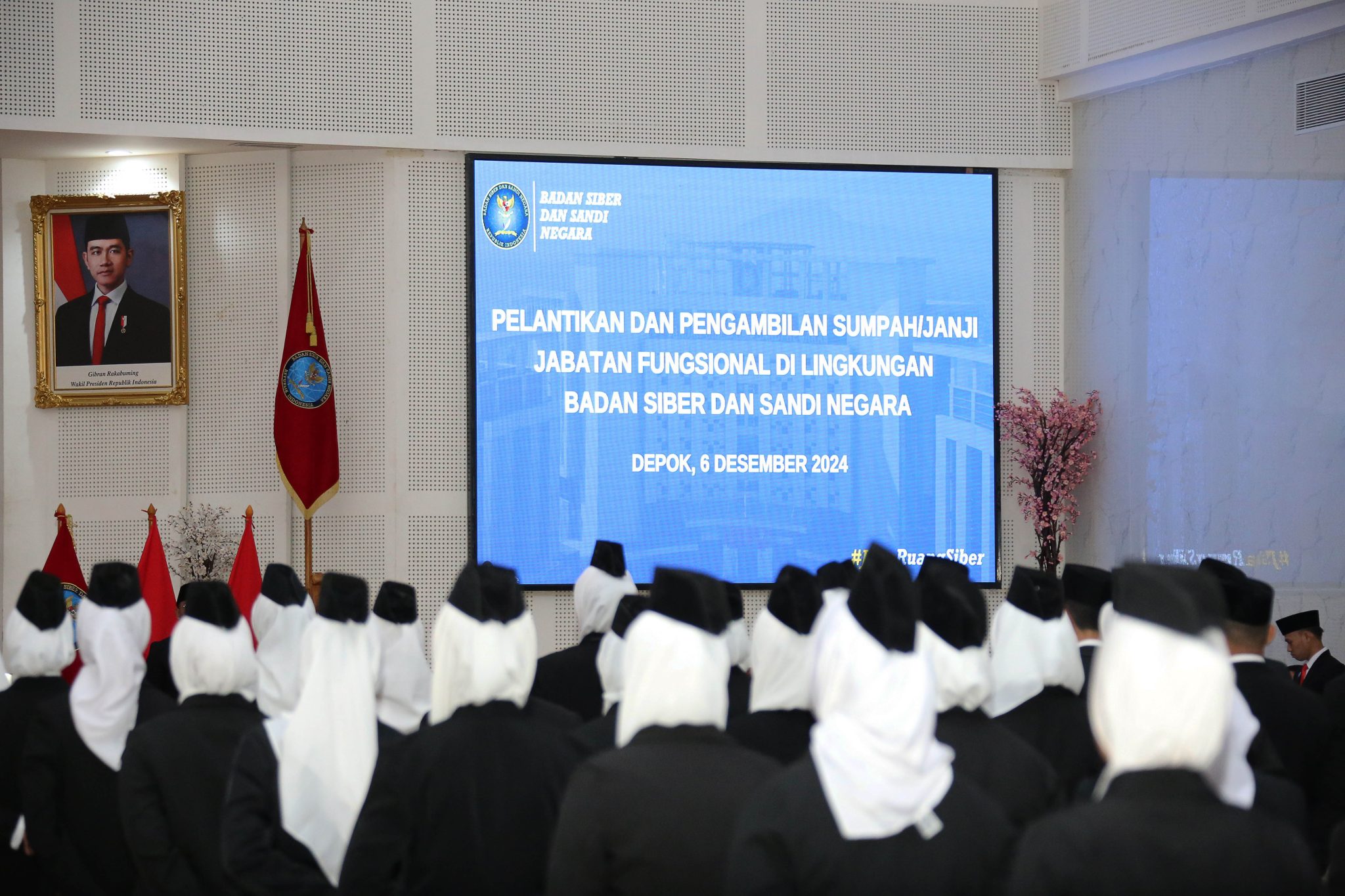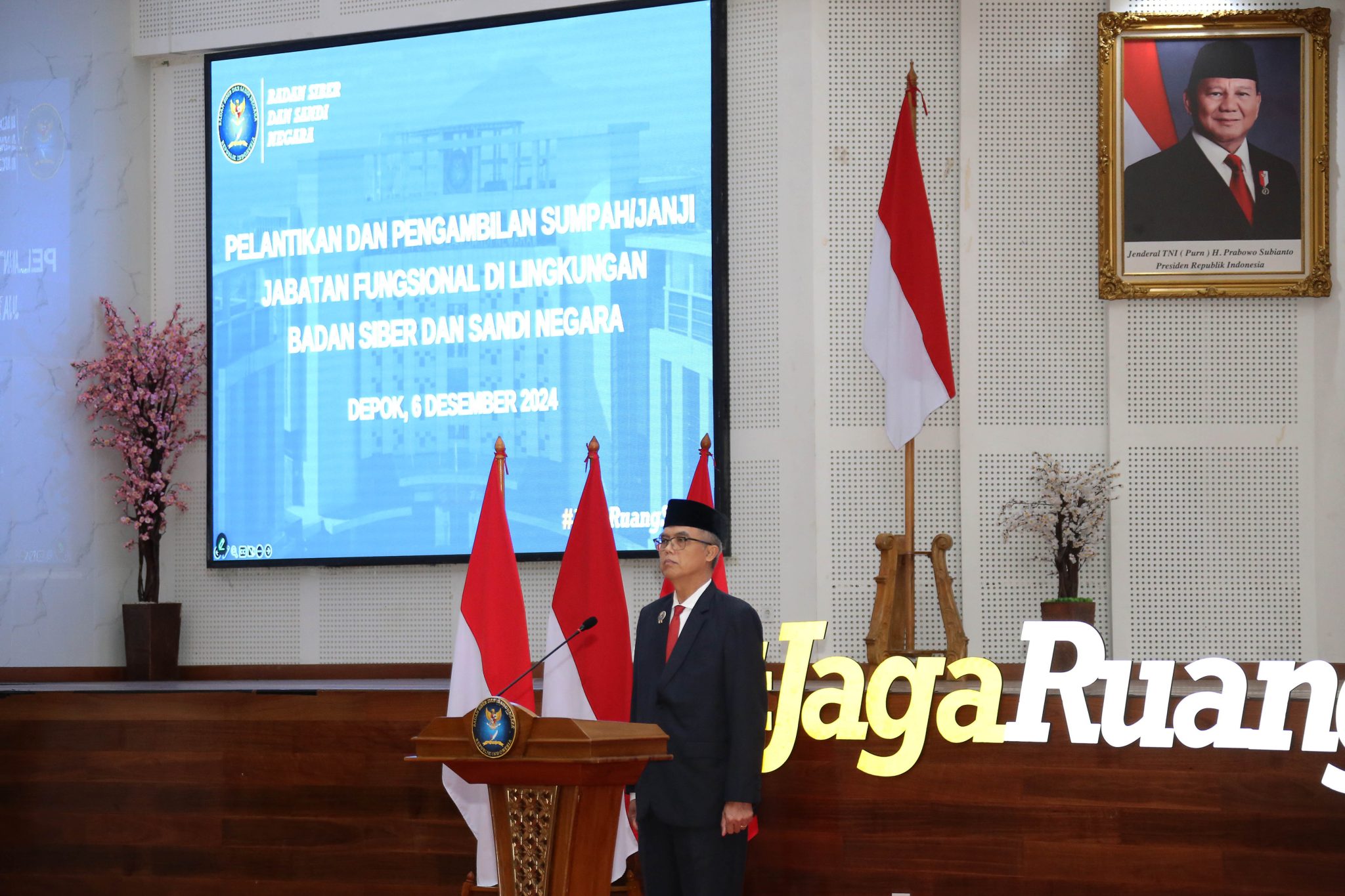 BSSN melantik 104 pejabat fungsional, dengan Sekretaris Utama Y.B. Susilo Wibowo menekankan pentingnya sinergi, kompetensi, integritas, dan dedikasi untuk mencapai tujuan bersama dan menjaga nama baik organisasi.