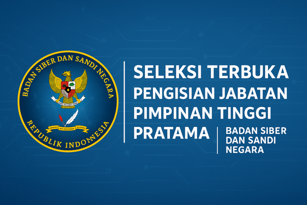 Dalam rangka pengisian Jabatan Pimpinan Tinggi Pratama di lingkungan BSSN tahun 2024, dengan ini diumumkan kepada PNS yang memenuhi persyaratan untuk mengikuti seleksi terbuka pada jabatan Direktur Kebijakan Sumber Daya Manusia Keamanan Siber dan Sandi, Direktur Keamanan Siber dan Sandi Pemerintah Daerah, Direktur Keamanan Siber dan Sandi Pembangunan Manusia, Direktur Keamanan Siber dan Sandi Energi dan Sumber Daya Alam, Direktur Keamanan Siber dan Sandi Teknologi Informasi dan Komunikasi, Media, dan Transportasi, dan Direktur Keamanan Siber dan Sandi Industri.