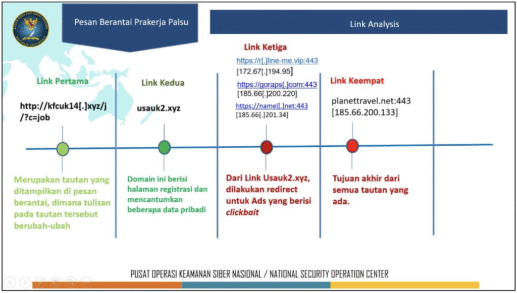 BSSN menemukan tautan phishing berkedok pendaftaran kartu prakerja yang mengumpulkan data pribadi korban dan menyebar lewat WhatsApp, dengan tujuan clickbait dan potensi keuntungan AdSense.