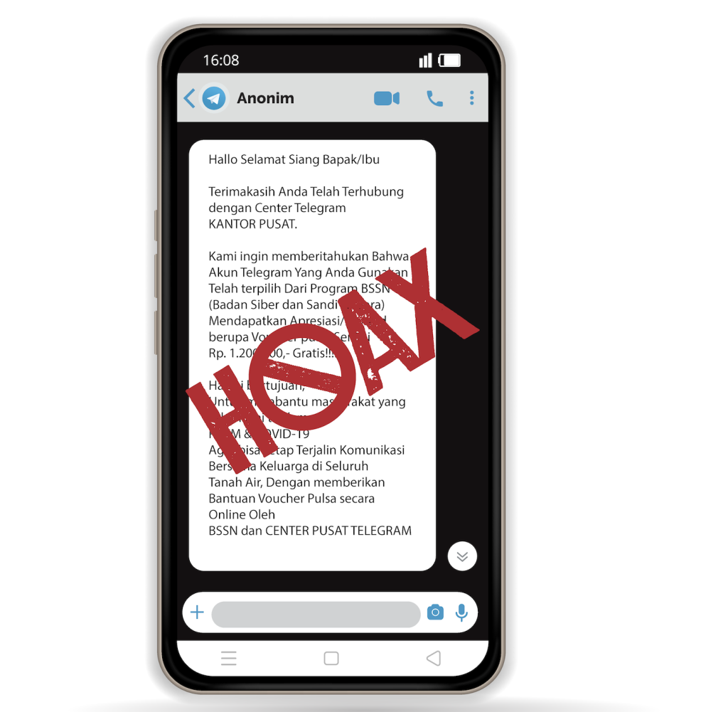 BSSN memberikan peringatan kepada masyarakat tentang adanya upaya penipuan yang menggunakan teknik social engineering yang dilakukan melalui aplikasi Telegram dan WhatsApp menggunakan hoaks isu bantuan voucer pulsa komunikasi untuk masyarakat terdampak Covid-19.